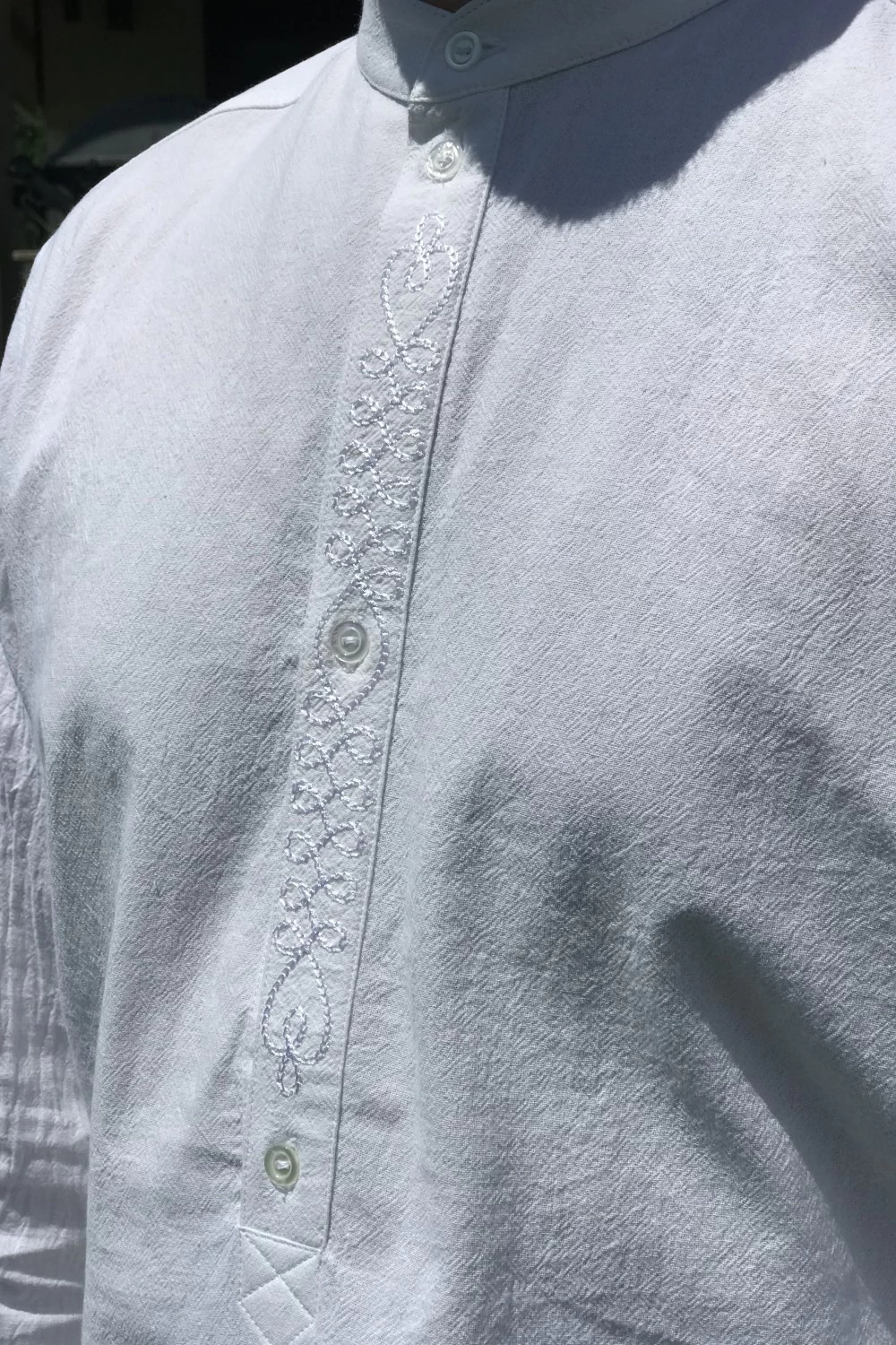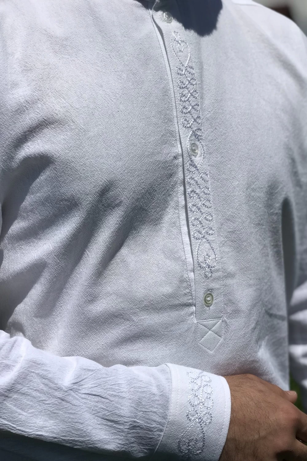 A 100% pamutvászon anyagból készült László ing megfelelő választás bocskai kosztümhöz, de egy elegáns fekete nadrággal is kitűnő párosítás. Jó hír a férfiaknak: a nyaki részt díszítő függőleges hímzés kiváltja a nyakkendőt.