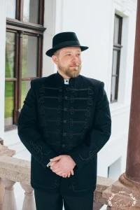 A meleg gyapjúposztóból készült zsinóros kabát bocskai öltönyre felvéve is hordható, de természetesen egy posztómellényre is rávehető. Magas minőségű gyapjúposztóból készül, mely fogcsikorgató hidegben is biztosítja a meleget viselőjének.