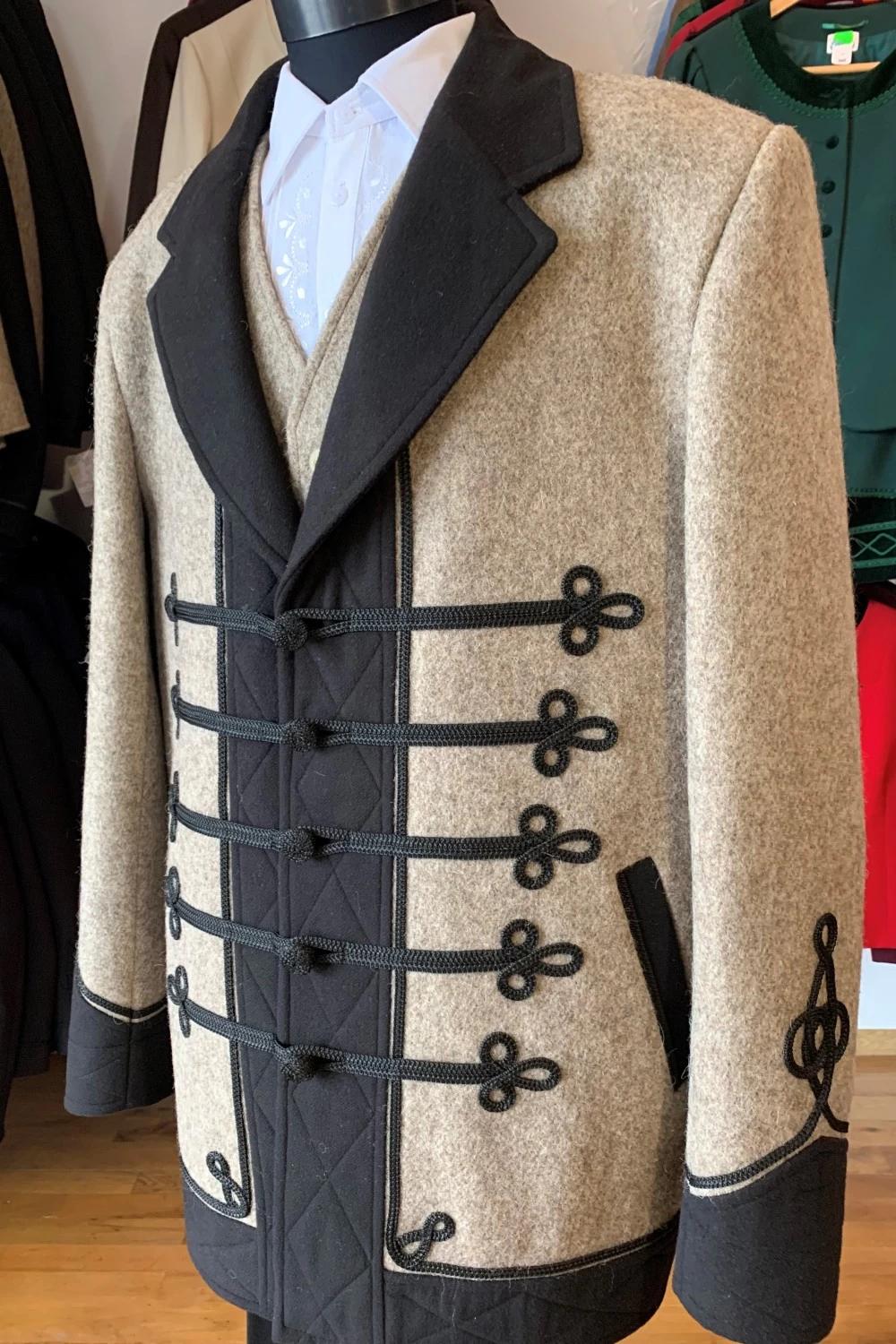 A meleg gyapjúposztóból készült zsinóros kabát bocskai öltönyre felvéve is hordható, zsinóros posztómellényre is rávehető és székely harisnyához is alkalmas. Magas minőségű háziszőttes anyagból készül, mely fogcsikorgató hidegben is biztosítja a meleget viselőjének.