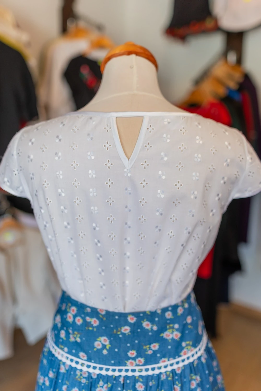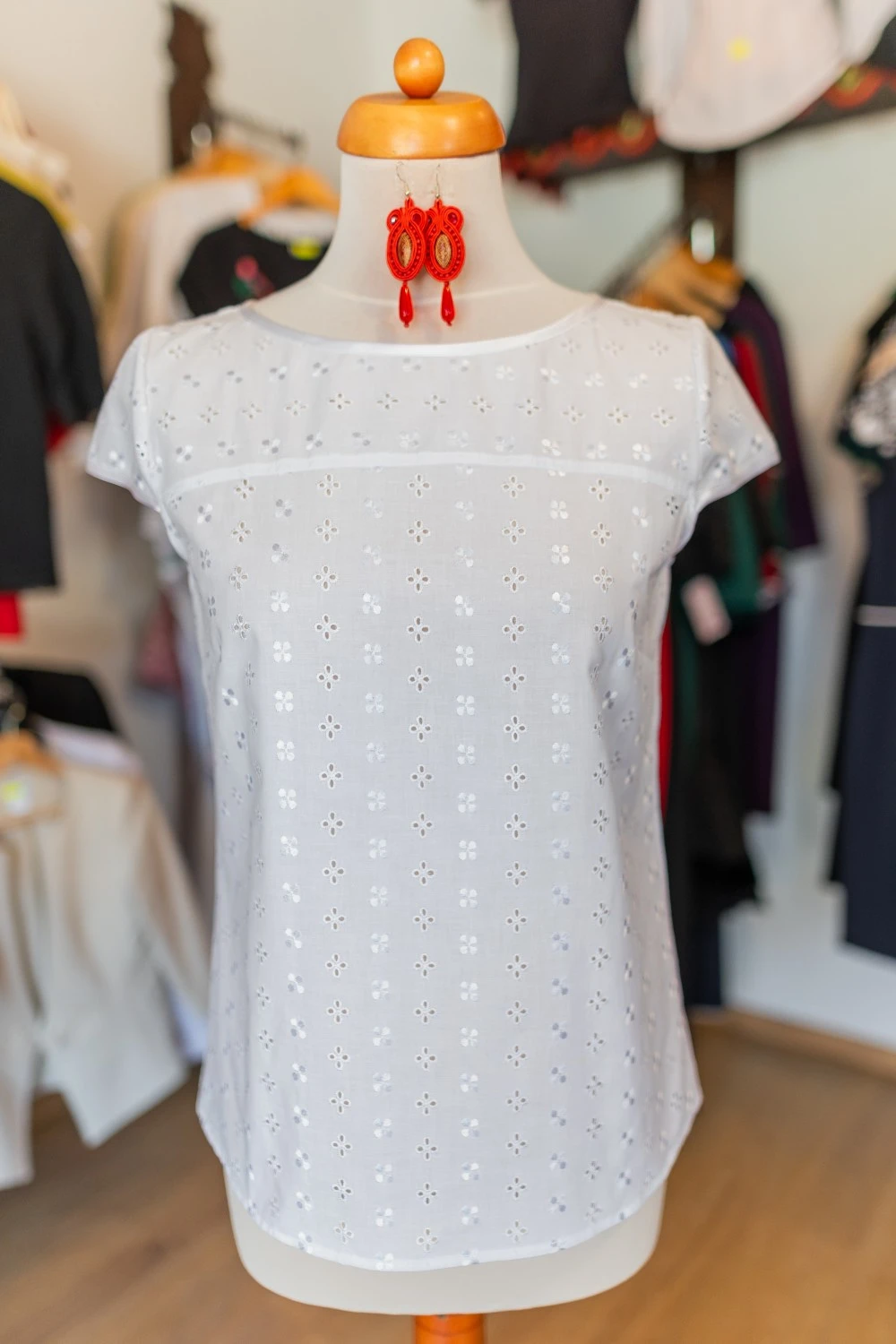 Az Adél blúz elegáns és nőies darab, amely finom madeira anyagból készült, könnyed viseletet biztosítva a mindennapokban és alkalmakra egyaránt. Letisztult szabása és aprólékos hímzett mintázata időtlen stílust kölcsönöz, amely könnyen kombinálható szoknyával vagy nadrággal is.