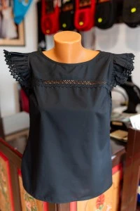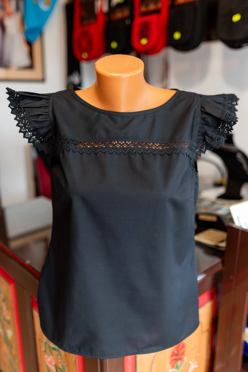 A Mari blúz a hagyományos népi stílus és a modern letisztultság harmonikus ötvözete. Batisztból készült, ami finom szövésű, tiszta pamut anyagot jelent – könnyű, légies viselet, amely kellemes tapintásával és természetes hatásával ideális választás a melegebb napokra. A csipkével díszített vállrész és az apró fodrok játékos nőiességet visznek a megjelenésbe, miközben az egyszerű szabás időtálló eleganciát képvisel. Tökéletes választás hétköznapokra, de akár különleges alkalmakra is, ha egy diszkréten különleges darabot keres.