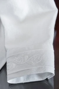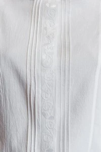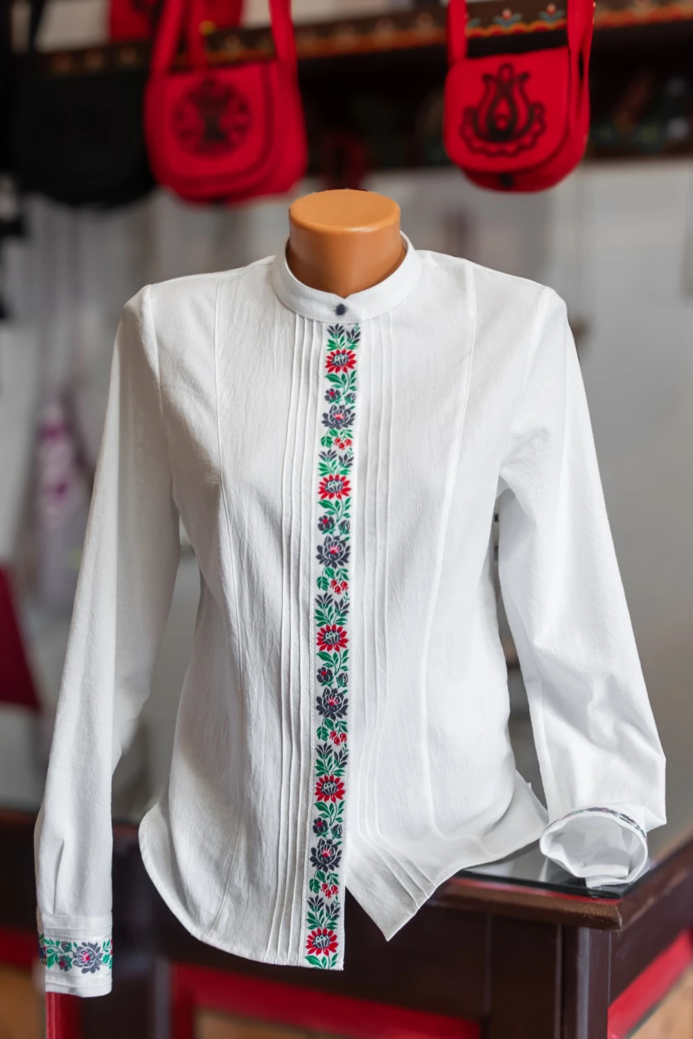A Regina blúz egy időtálló darab, amely finoman ötvözi a klasszikus és modern elemeket. Pamutvászonból készült, így kényelmes és légáteresztő, tökéletes mindennapi viseletre és alkalmakra egyaránt. A szűcs hímzéssel díszített fehér minta visszafogott, mégis különleges részlet, amely a hagyományos kézművesség szépségét idézi. Az enyhén karcsúsított szabás kiemeli a nőies vonalakat, miközben elegáns és letisztult megjelenést biztosít.