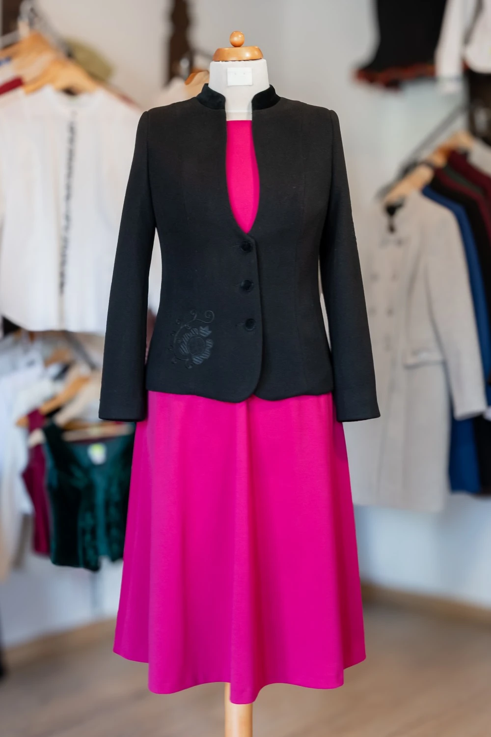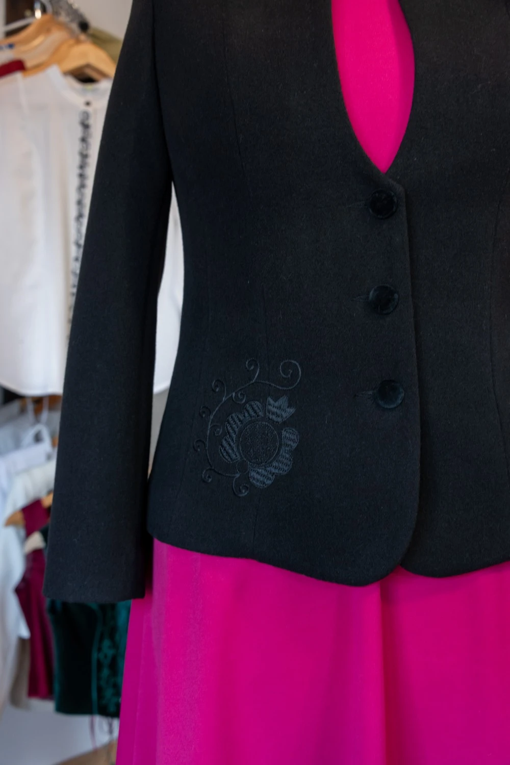 Az Olga zakó egy igazán elegáns, időtálló darab, amely a hagyományos udvarhelyszéki hímzéssel válik igazán különlegessé. Gyapjú posztóból készült, így meleg és kényelmes viselet a hűvösebb napokon is. A zakó szabása letisztult és nőies, finoman követi a test vonalát, kiemelve a viselője eleganciáját. Tökéletes választás azok számára, akik a hagyományos és a modern stílus harmonikus ötvözetét keresik.