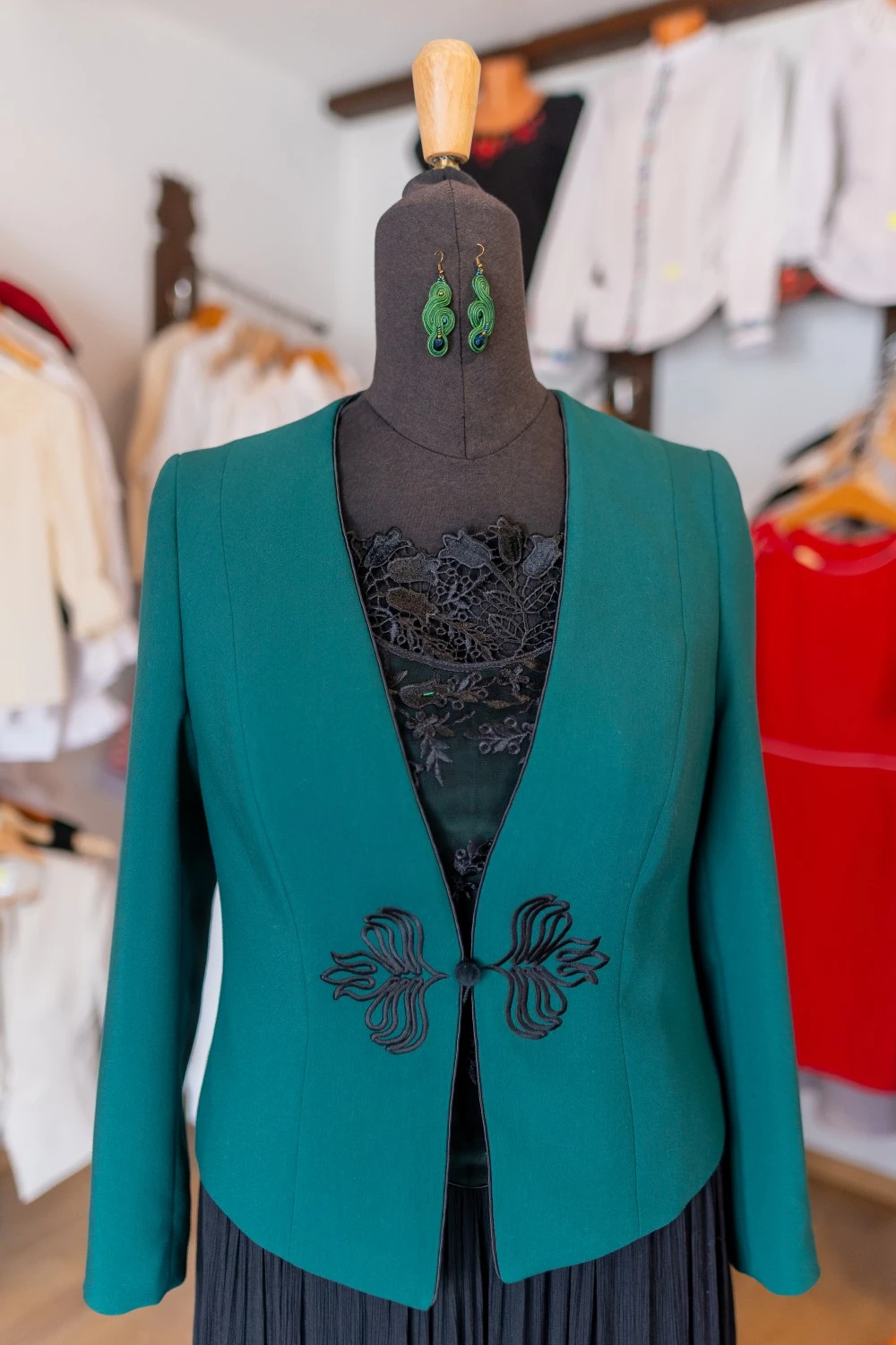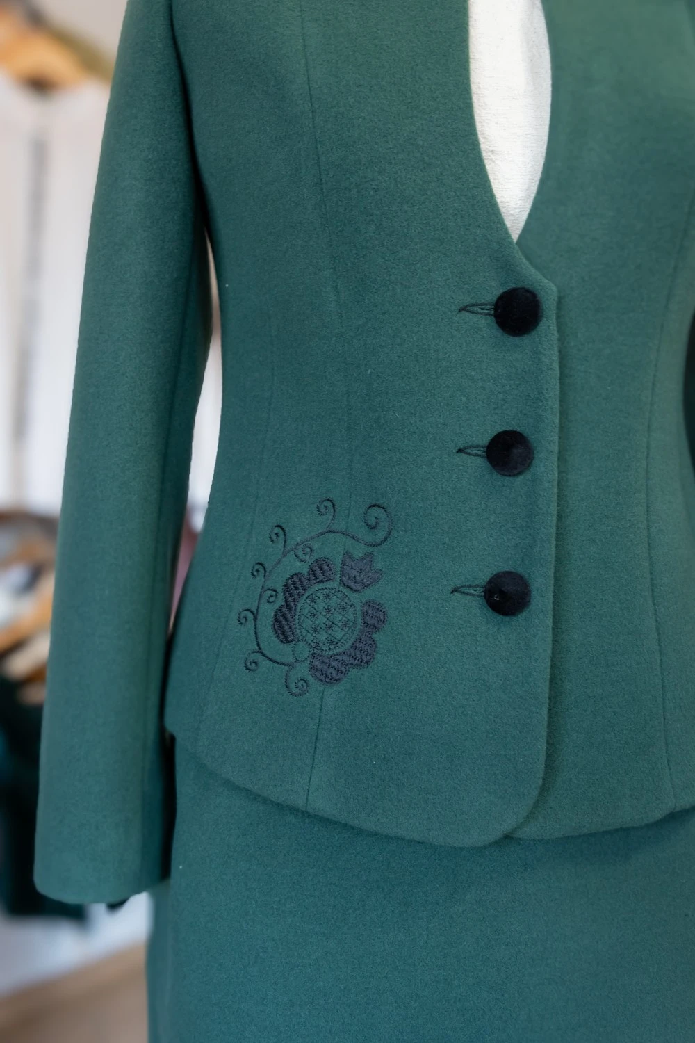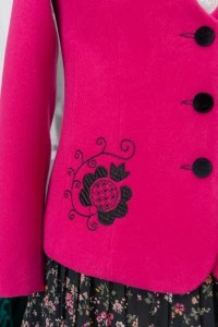 Az Olga zakó egy igazán elegáns, időtálló darab, amely a hagyományos udvarhelyszéki hímzéssel válik igazán különlegessé. Gyapjú posztóból készült, így meleg és kényelmes viselet a hűvösebb napokon is. A zakó szabása letisztult és nőies, finoman követi a test vonalát, kiemelve a viselője eleganciáját. Tökéletes választás azok számára, akik a hagyományos és a modern stílus harmonikus ötvözetét keresik.