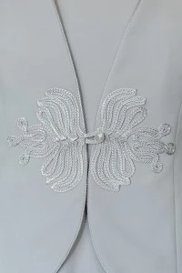 Egy ilyen blézer pedig sokszor lehet megmentő, ha hirtelen kell egy elegáns darab, amely tökéletes kiegészítője bármilyen öltözéknek. A képen látható fazon V kivágása optikailag nyújtja az alakot, miközben időtálló eleganciát sugároz. A diszkrét, vízszintesen elhelyezkedő tulipánminta pedig egyértelműen Erzsós védjegy.