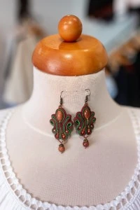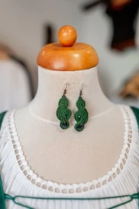 Kézzel készült ékszereink a hagyományos motívumok és a modern stílus ötvözetei. Minden darab egyedi formavilágú és színvilágú, így könnyen megtalálhatja mindenki a saját személyiségéhez illő kiegészítőt. A finom kidolgozás és az élénk, mégis elegáns színek különleges karaktert adnak ezeknek a fülbevalóknak és nyakláncoknak. Legyen szó ünnepi viseletről vagy a mindennapokról, ezek az ékszerek biztosan kiemelik viselőjük egyéniségét.