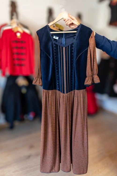 Az Annabella ruha, különösen piros változatban garantáltan minden tekintetet magára vonz. Választották már polgári esküvőhöz, kicsengetéshez, műsorvezetéshez, násznagyi ruhaként, de volt, akinek munkahelyi viseletként is beillett a ruhatárába. Egyszerű, testhez álló fazonját az ujjrészen látható jellegzetes matyóminta dobja fel. Anyaga rugalmas szövet.