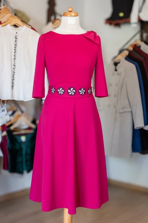 Az Annabella ruha, különösen piros változatban garantáltan minden tekintetet magára vonz. Választották már polgári esküvőhöz, kicsengetéshez, műsorvezetéshez, násznagyi ruhaként, de volt, akinek munkahelyi viseletként is beillett a ruhatárába. Egyszerű, testhez álló fazonját az ujjrészen látható jellegzetes matyóminta dobja fel. Anyaga rugalmas szövet.