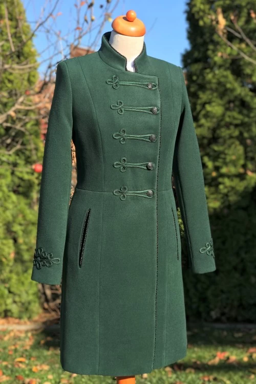 A hetési hímzésmintával díszített kabát szintén nagy kedvencünk, hiszen bátran viselhetjük hétköznapokon farmernadrággal, de elegáns alkalmakra is kiválóan megfelel. A hímzés színeit úgy válogattuk össze, hogy szinte bármilyen más színnel kombinálható legyen. Egyszerű, vidám és fantáziadús modell. Jó hír, hogy ha ezt a kabátot választjuk, gond nélkül hízhatunk/fogyhatunk, hiszen igény szerint egész egyszerűen kinnebb, vagy bennebb varrjuk a gombokat rajta, ezáltal a kabátunk fél méretet nő, vagy csökken. A kabát steppelt béléssel van ellátva.