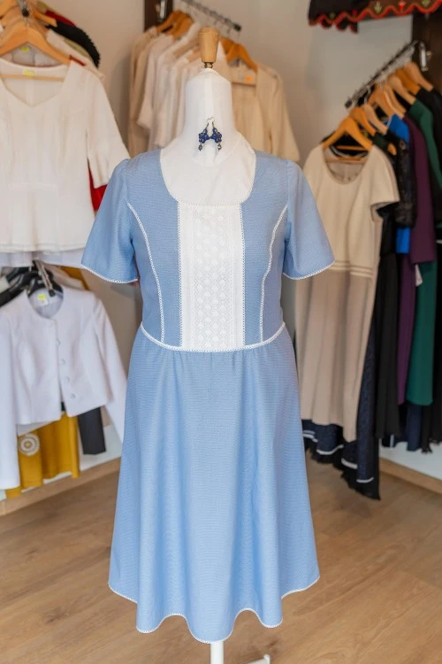 The name of this dress comes from the embroidered flowers (edelweiss) which you can see on the bottom part of the dress. The material is the usual leather-friendly version: a linen and viscose blend. Why do we love it so much? Because it offers a subtle elegance, it's comfortable and it follows our principle that "less is sometimes more".